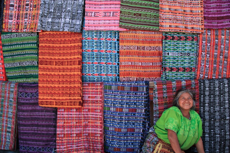 街に入ると古い石畳の上をウィピルと呼ばれるグアテマラの伝統衣装に身を包んだ女性たちが、大きな荷を背負いながら足早にみな同じ方角へと歩いている。ついていってみると、そこに目指す市場があった。市場と言っても店が軒を連ねているわけではなく、屋根のある大きな広場の地面に、先ほどの女性たちが布を広げて、その上に果物や野菜などを並べて売っている。