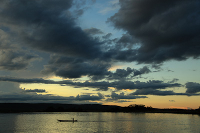 オカバンゴデルタに沈む夕陽