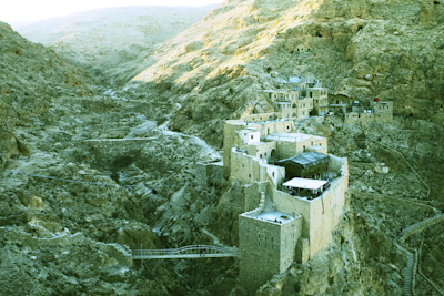 シリアの砂漠地帯にそびえる岩山を登る。切り立った崖に沿って作られた階段は山頂へと続いているが、なかなか前に進まない。遮るもののない強烈な太陽光線が肌に突き刺さり汗が噴き出すものの、乾燥した風が瞬時にその汗をぬぐい去って行く。重い荷物を持って階段を黙々と登る。途中、何度も休憩しながら1時間かけてようやく上り詰めた。そして辿り着いたマルムーサ修道院。ここはギリシャ聖教の修道院で、訪れるものを拒まず、誰でもここに滞在し瞑想し祈りを捧げることができる。岩山の頂上付近をくり抜いて作られた修道院は、下界とは隔絶された時間が流れている。テラスから見えるのは一面の砂漠地帯。