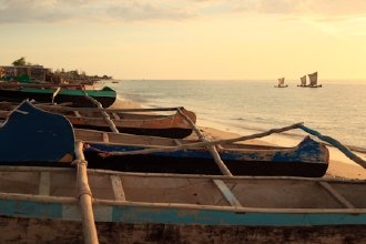 大量の荷物と乗客が隙間なく荷台に押し込まれ、窓ガラスのない窓枠からは、未舗装の道路から舞い上がる埃が絶え間なく入り込んで来る。粗末なスピーカーから大音量の独特のリズムを持つリンガラミュージックが流れ出し、乗客はその音に負けないように声を張り上げなにやら話している。いくつかの丘を越え、そのたびにバスのエンジンはとうんうんと唸り頑張って前へ進む。もみくちゃ状態の車内でなんとか窓側の座席を確保し、外を眺める。車窓にはモザンビーク海峡の海が、穏やかな表情で水平線の彼方まで広がっている。